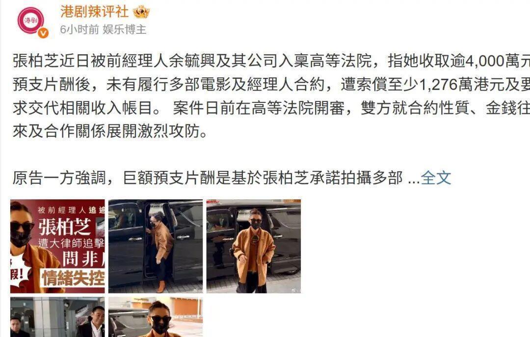 事情的起因就是微博上大v爆料,知名女星张柏芝遭前经纪人余毓兴及其公司诉至高等法院,被索赔至少1276万港元。
